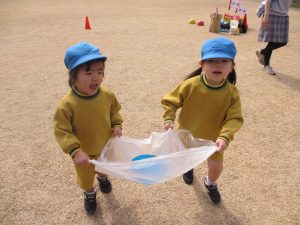 しっぽ取りゲームやボール運びゲームをして遊びました。